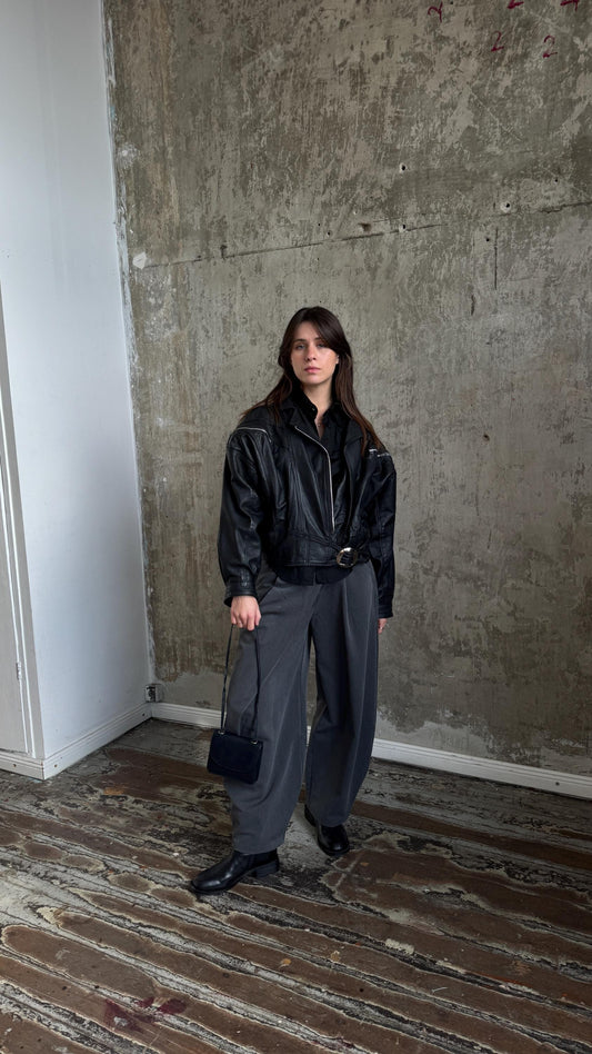 Vintage 90s Oversized Leather Biker Bomber Jacket In Black