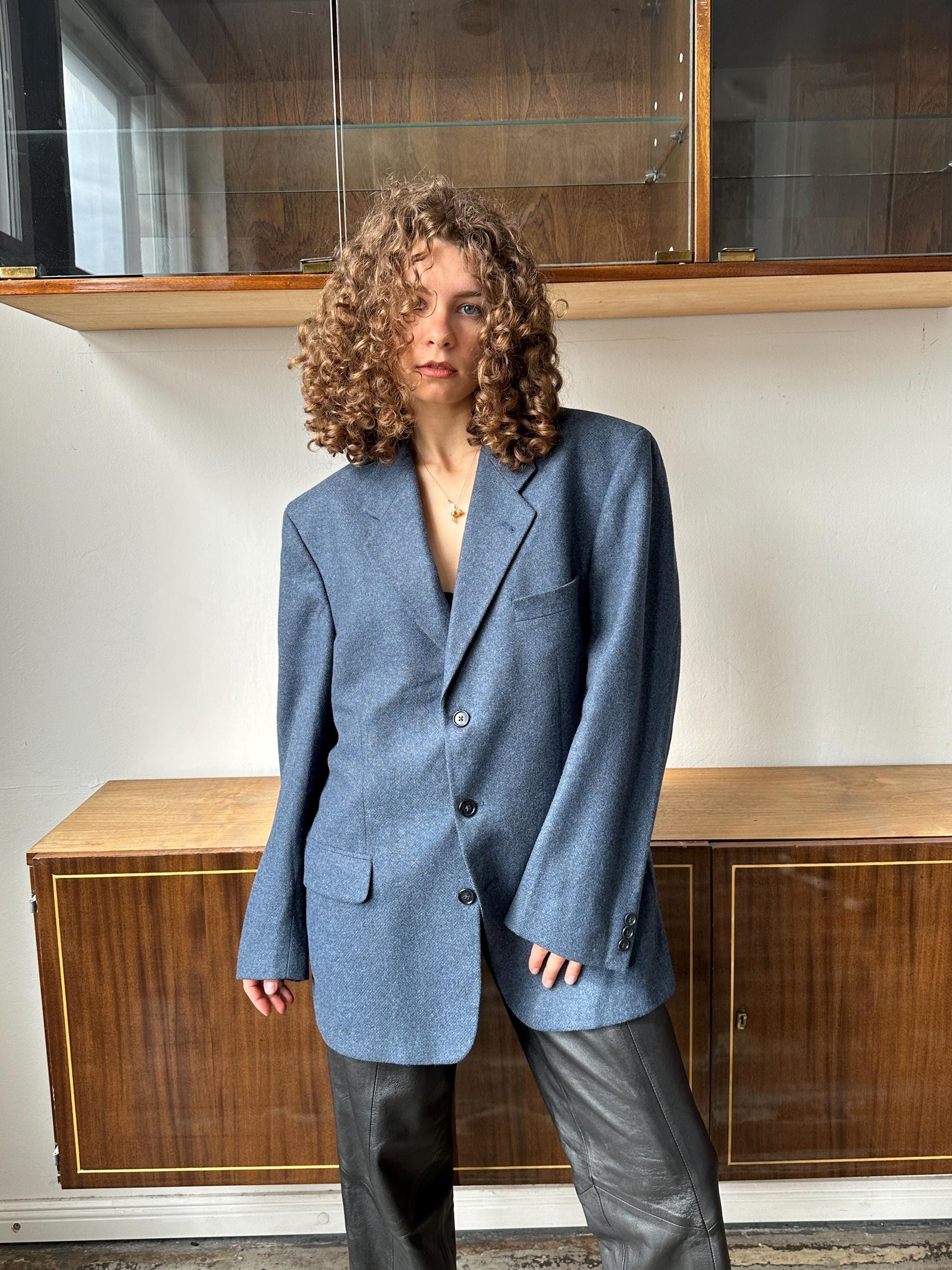 Vintage 90s oversized classic wool blazer in blue