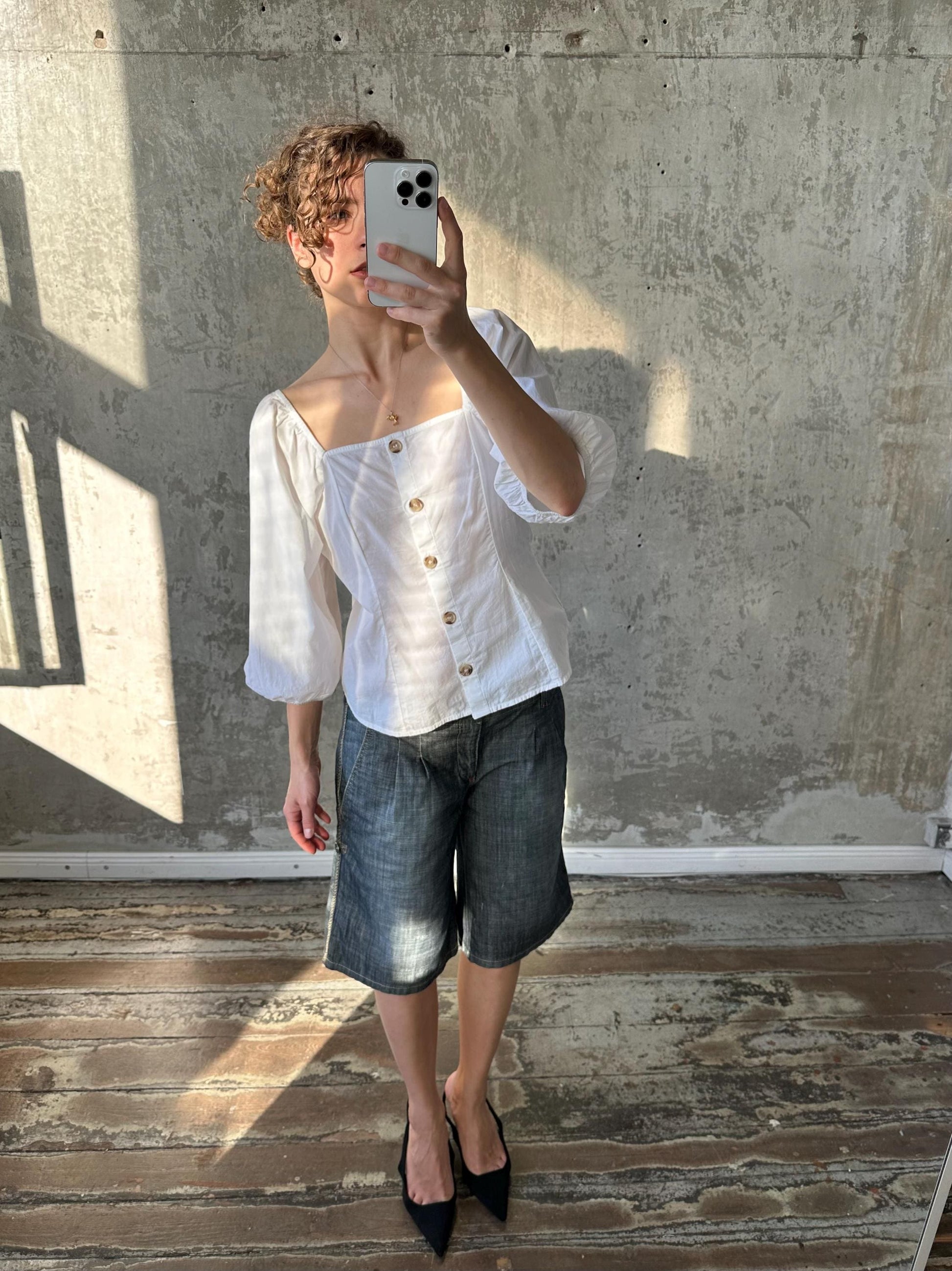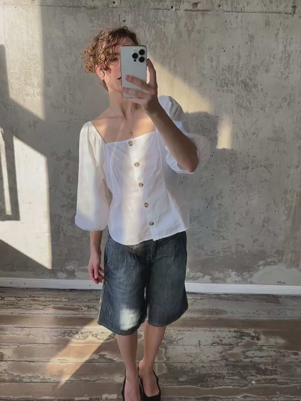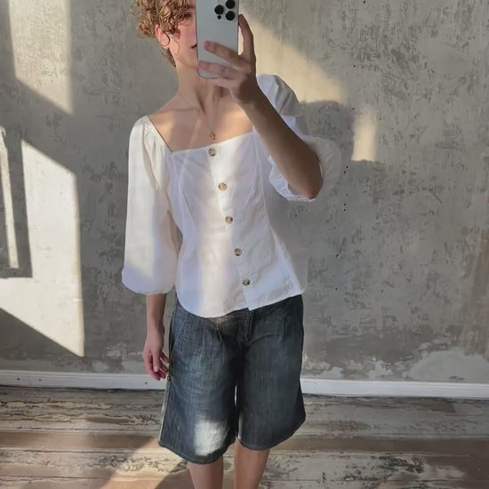 Vintage traditional cotton blouse in white, traditional (folk&boho) blouse with short 3/4 bell sleeves, button closure, made of 100% cotton, fits XS - M, very light, good condition