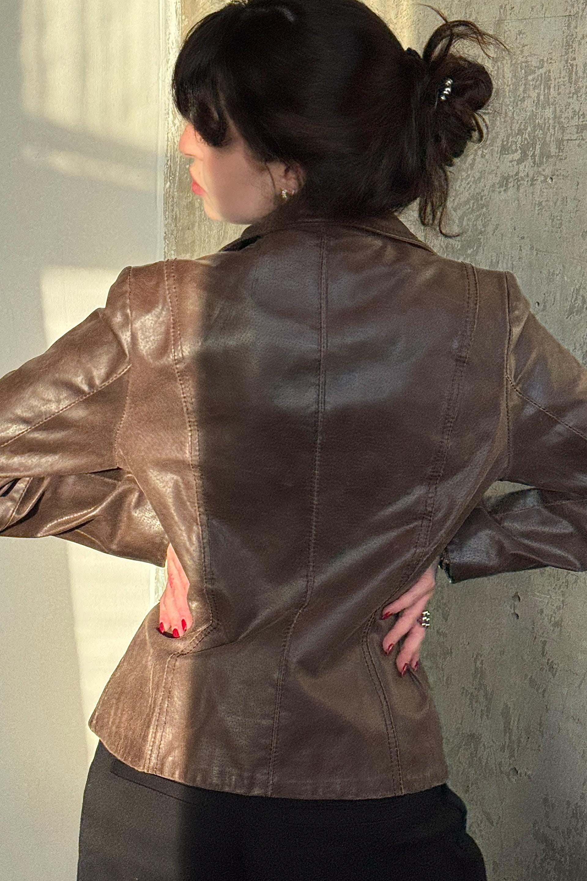 Vintage Leather Boxy Jacket In Brown In Cowboy Style